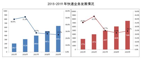 2019年是新中國成立70周年,是決勝全面建成小康社會第一個百年奮斗目標的關鍵之年。全行業在以習近平同志為核心的黨中央堅強領導下,全面貫徹落實中央決策部署,堅持穩中求進工作總基調,堅持以供給側結構性改革為主線,堅持新發展理念和以人民為中心的發展思想,堅定不移推動郵政業高質量發展,郵政業改革發展取得了新成效,保持了總體平穩、穩中有進的良好態勢。全行業業務總量和業務收入分別完成1.6萬億元和9642.5億元,同比分別增長31.5%和22%,快遞業務量突破600億件。