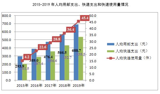 2019年郵政寄遞服務業務量完成247.2億件,同比增長4.3%;郵政寄遞服務業務收入完成428.7億元,同比增長16.4%。