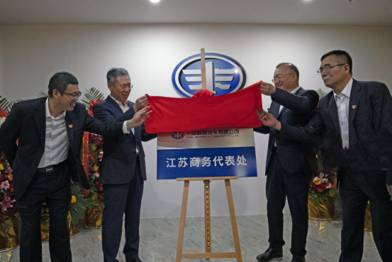 活動當天,還舉行了一汽解放江蘇商代處揭牌儀式。一汽解放董事長胡漢杰、一汽解放總經理朱啟昕、一汽解放汽車銷售有限公司總經理王志才、一汽解放青島汽車有限公司副總經理紀勝師等領導共同為商代處揭牌。