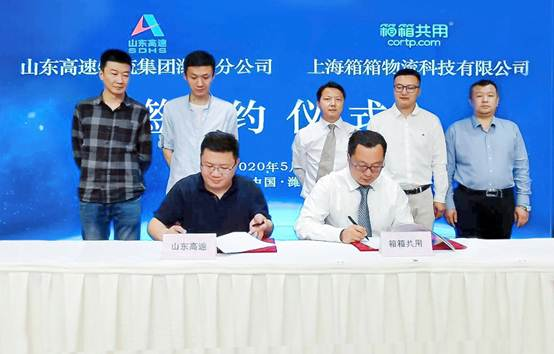 2020年5月20日,山東高速物流集團與箱箱共用在山東濰坊舉行盛大簽約儀式。山東高速集團濰坊分公司副總經(jīng)理王明華先生與箱箱共用集團副總裁王金成先生代表雙方公司親臨簽約現(xiàn)場,共同見證并進行了簽約儀式。
