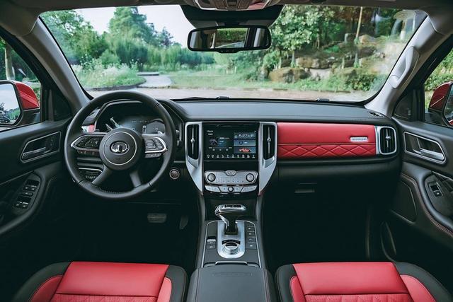 硬派外表下,越野炮有著精致豪華的內飾,方向盤、座椅均為真皮質地,大面積軟包內飾搭配菱形格縫線,可謂是十足的豪華SUV風格。