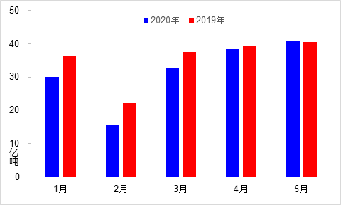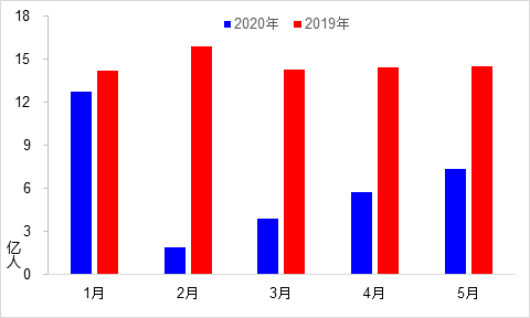 5月,完成營業性客運量7.4億人,恢復至去年同期的50.7%,恢復程度較4月提高10.9個百分點,其中公路營業性客運量下降49.2%、水路客運量下降51.0%。