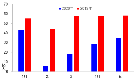 1-5月,完成營業性客運量31.6億人,同比下降56.9%。其中,公路營業性客運量下降57.3%、水路客運量下降59.0%。