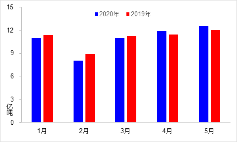 1-5月,完成貨運量157.3億噸,同比下降10.4%,其中公路貨運量下降12.0%、水路貨運量下降9.9%。