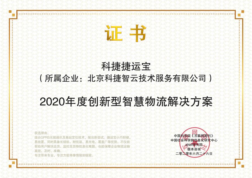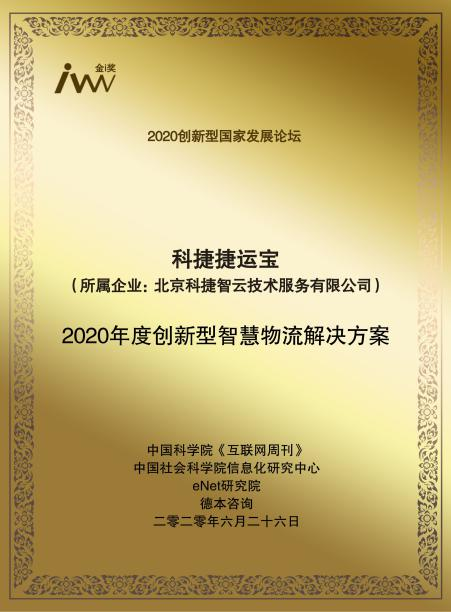 科捷捷運(yùn)寶榮獲2020創(chuàng)新型國家發(fā)展論壇金i獎(jiǎng)