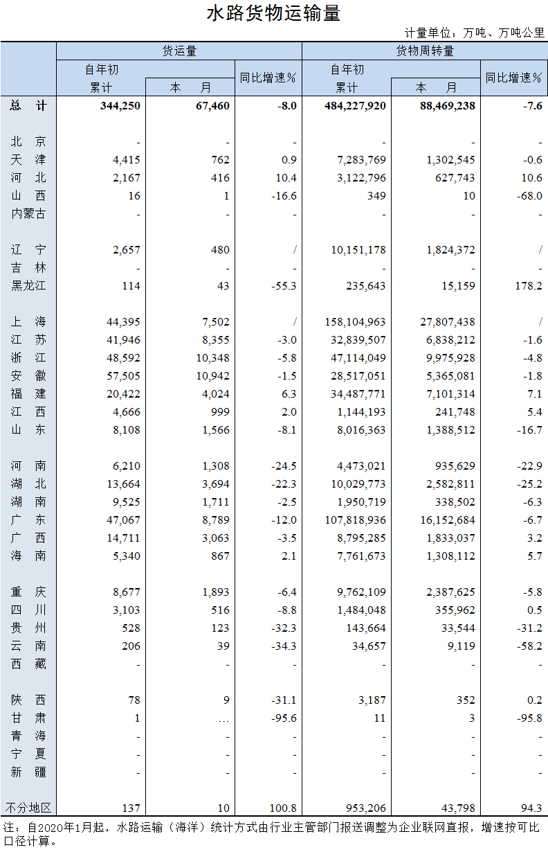 2020年6月水路貨物運(yùn)輸量