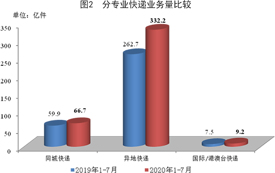 1-7月,全國快遞服務(wù)企業(yè)業(yè)務(wù)量累計完成408.2億件,同比增長23.7%;業(yè)務(wù)收入累計完成4547.1億元,同比增長13.5%。其中,同城業(yè)務(wù)量累計完成66.7億件,同比增長11.4%;異地業(yè)務(wù)量累計完成332.2億件,同比增長26.5%;國際/港澳臺業(yè)務(wù)量累計完成9.2億件,同比增長22.7%。