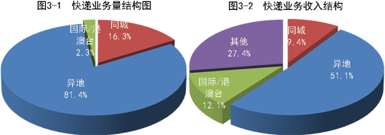 | 2、快遞業(yè)務(wù) | 億元 | 4547.1 | 723.3 | 13.5 | 18.9 |