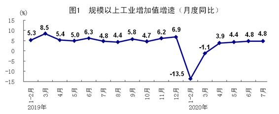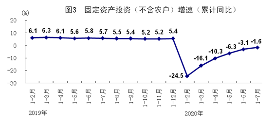 總的來看,7月份國民經濟繼續穩定恢復,主要經濟指標持續改善。但全球新冠肺炎疫情仍在蔓延,國際經濟環境嚴峻復雜;國內結構性、體制性、周期性矛盾并存,發展面臨的困難和挑戰較多。下階段,要堅持以習近平新時代中國特色社會主義思想為指導,按照黨中央國務院決策部署,堅持穩中求進工作總基調,堅定實施擴大內需戰略,深化供給側結構性改革,加大改革開放力度,進一步激活市場主體,著力暢通經濟循環,落實“六保”促進“六穩”,鞏固擴大疫情防控和經濟恢復成果,努力實現經濟社會發展目標任務。