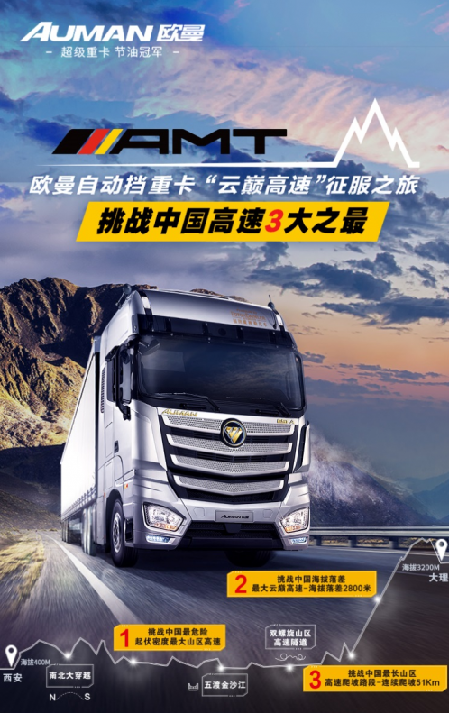 在此背景下,為了讓更多人了解到自動擋重卡的產品優勢,加快智慧物流普及的進程。8月19日,一場自動擋重卡“云巔高速”征服之旅,將在西安啟動。屆時,歐曼自動擋重卡將從陜西西安出發,跨越秦嶺、四川盆地、橫斷山脈等多段復雜地形,最終抵達云南大理,全面測評自動擋重卡在山區高速的真實表現。從此次活動前期的露出來看,其中有三大亮點引人關注。