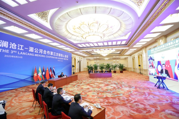 國務院總理李克強8月24日上午在人民大會堂出席瀾滄江—湄公河合作第三次領導人視頻會議。李克強和老撾總理通倫共同主持會議。柬埔寨首相洪森、緬甸總統溫敏、泰國總理巴育、越南總理阮春福出席。