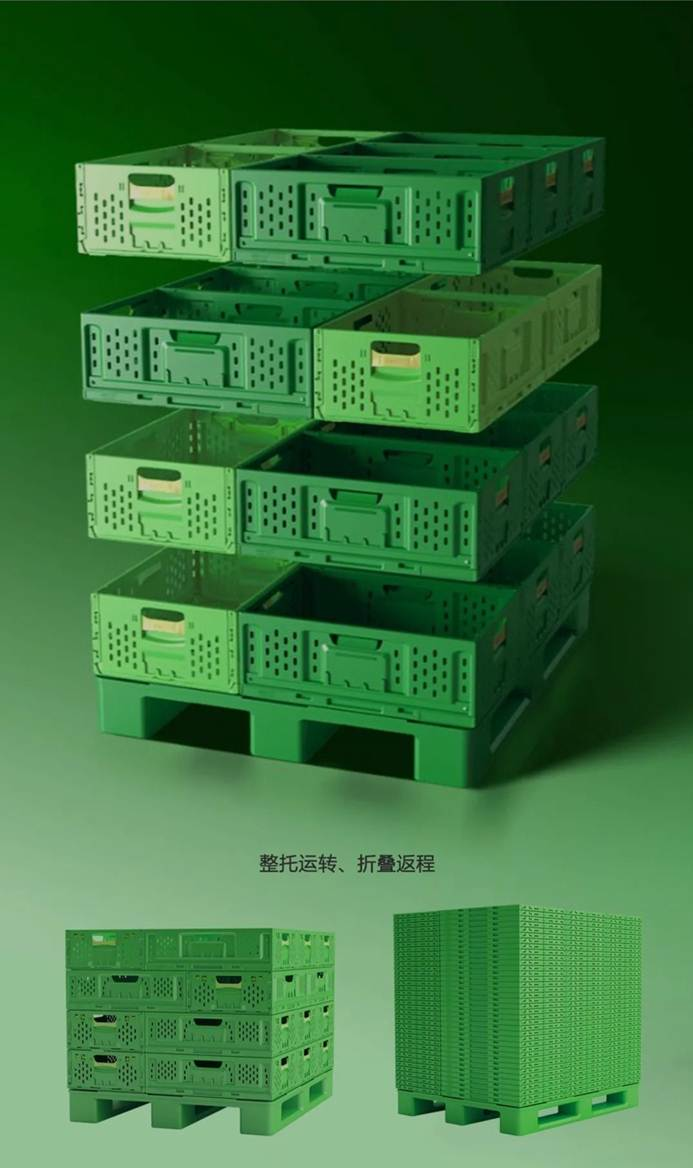 箱箱共用的金剛折疊籮因為采取了中空氣輔注塑新工藝,具備了雙光面、無衛生死角等結構優勢,相比于傳統方案,超薄壁的設計更是大大降低空箱回程的物流成本,尤其在社區型生鮮連鎖平臺、生鮮電商等新興業態,因為清洗效率高、回程成本低、貨物損傷少,該技術及其數字化解決方案已成為生鮮行業提高生鮮產品品質,提升市場競爭優勢的重要技術手段之一。