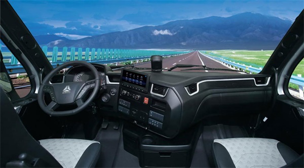 新一代“黃河”干線物流牽引車遵循安全才能高效,智能打造舒適的設計理念,呈現科技智控方案。中國重汽充分考慮快遞快運用戶“夜間運輸”“廠區泊車”以及“易疲勞”“長途漫漫”等問題,提供了360環視、疲勞預警、全力制動提醒、自動雨刮、自適應大燈、智能保養提醒、高速未關窗提醒、油箱防盜提醒、軸承異常提醒等全方位解決方案和駕乘體驗。
