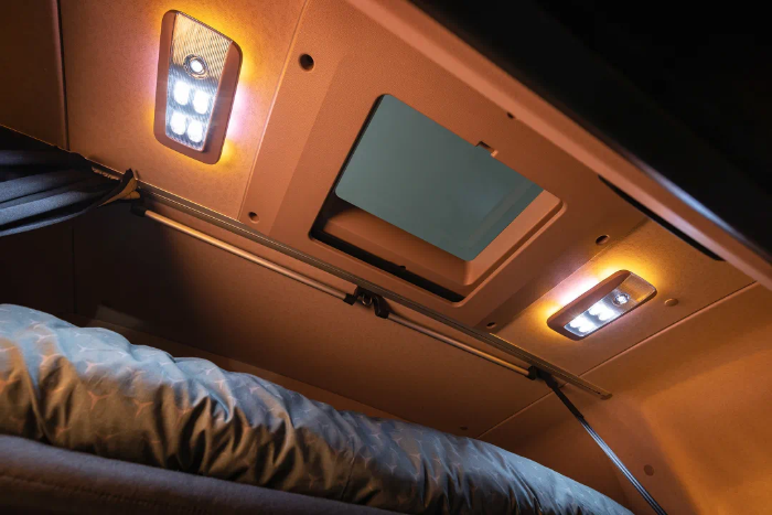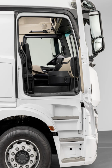 駕駛員的舒適性和車隊運營所需的功能性是此車型的重中之重,全新設(shè)計的流線型駕駛室(StreamSpace)和大型駕駛室(BigSpace)寬2.5米、發(fā)動機艙高度為120毫米,不僅駕乘空間十分寬敞,三級踏步的設(shè)計還能讓駕駛員更輕松地出入駕駛室。Actros F標(biāo)配經(jīng)典駕駛艙及傳統(tǒng)玻璃后視鏡,可選裝導(dǎo)航系統(tǒng)、溫度控制、多媒體互動駕駛艙和多功能方向盤、動力系統(tǒng)預(yù)見性巡航(Predictive Powertrain Control,PPC)等多項可選功能。