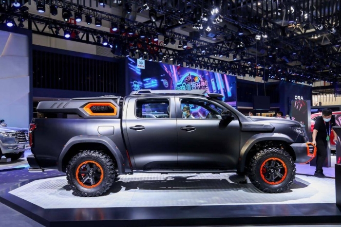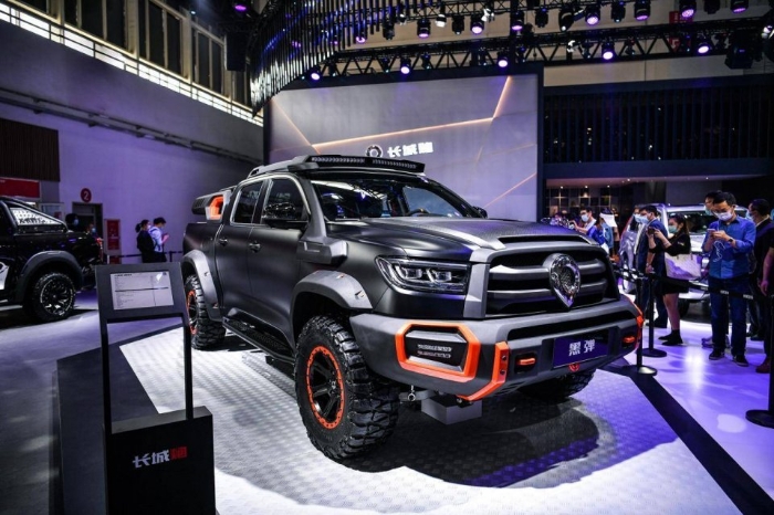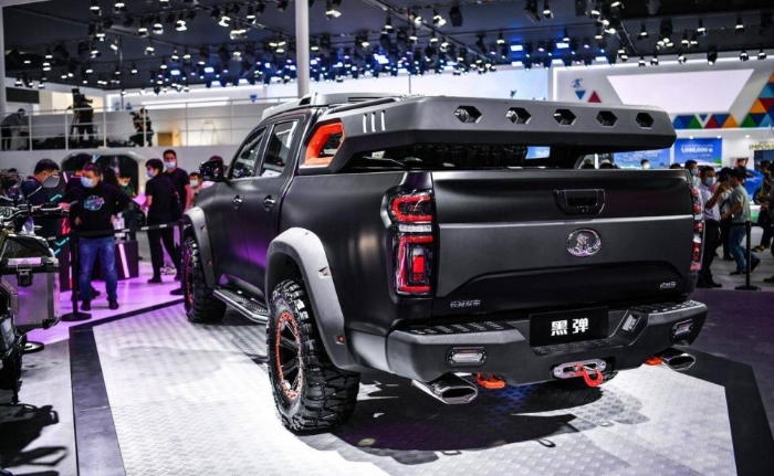 本次車展上,以長城炮越野皮卡改裝而來的黑彈震撼亮相,以更加硬朗威猛的造型、黑橙色彩搭配,彰顯出舍我其誰的霸氣。