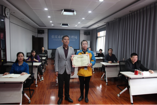 (何香蘭在重慶市郵政管理局領獎)