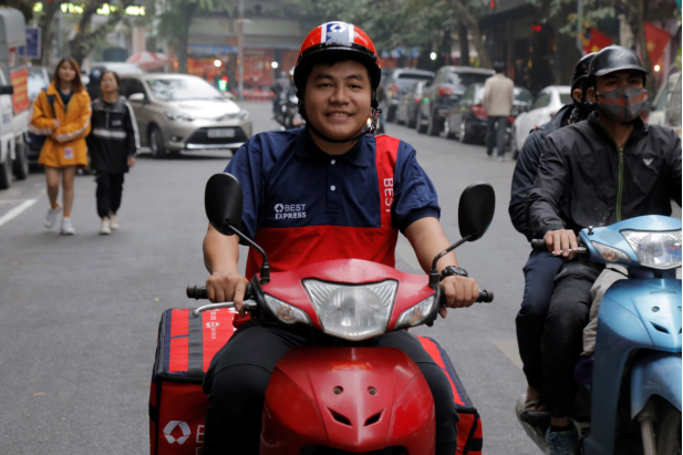 百世越南快遞員在送包裹