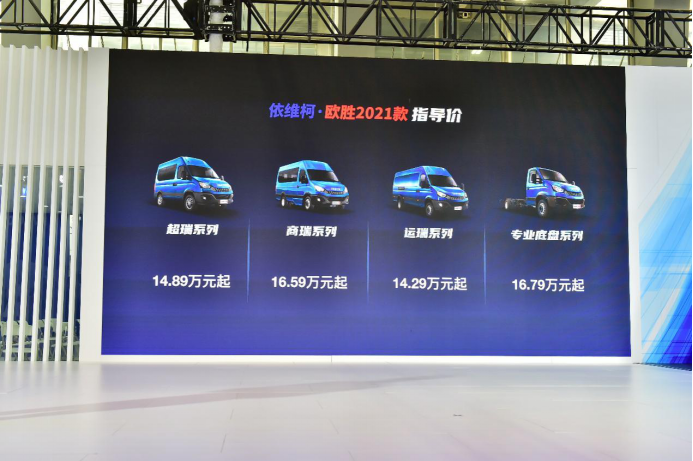 11月20日,廣州國際車展,“懂你的好搭檔”依維柯歐勝2021款正式上市,新車分為超瑞(多功能車)、運瑞(物流運輸)、商瑞(商旅通勤)和專業(yè)底盤(專用改裝)四大類,售價14.29萬元起。