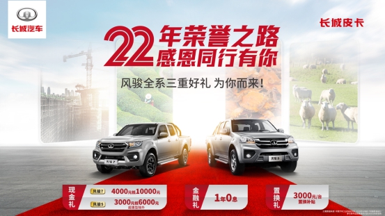 這樣一款基本功扎實,安全配置滿分的風駿皮卡已經來了,同時還帶來了三重購車好禮,讓致富的第一步邁地更輕松:風駿7購車4000元抵10000元、風駿5購車3000元抵6000元(超惠型除外)的現金禮,1年0息的金融禮,以及3000元/臺的置換補貼。風駿系列一直是為千千萬萬致富者遮風擋雨的忠實伙伴,也是與車主共同經歷人生進步的最佳搭檔,而2021款風駿5、風駿7全方位的主/被動安全配置,則為車主的每一段精彩人生保駕護航。
