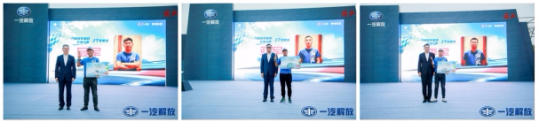 一汽解放領(lǐng)導(dǎo)為J7組別獲獎(jiǎng)選手頒獎(jiǎng)