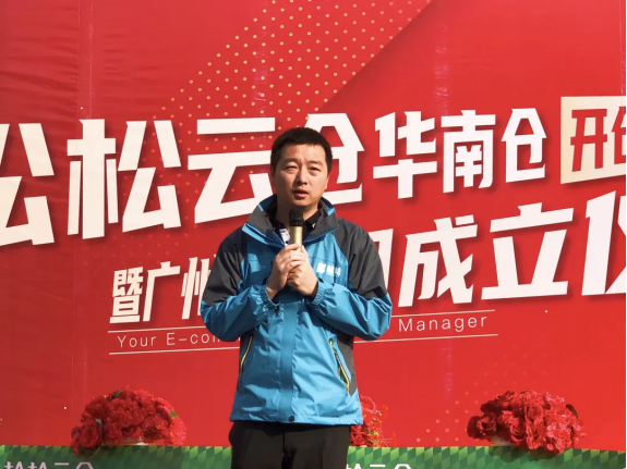 特邀嘉賓米云劉總致辭:“我們從2018年開始和松松合作,一直到現在。松松華南倉開倉伊始,我們再次與松松達成商業合作,來解決倉配物流后端的問題,就像松松的slogan所說的‘選擇松松,發貨輕松’,希望松松的小伙伴們把華南倉建設的更好,最后祝福松松華南倉開倉大吉、萬事順利。”