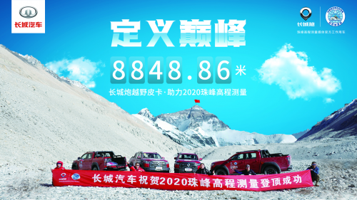 日前,珠穆朗瑪峰最新高程正式公布——8848.86米。作為本次任務的媒體官方工作用車,長城炮勇擔企業責任,秉承科學精神和攀登者精神,全程高光表現,勇于擔當、無畏向前,以中國品牌實力保障國家任務圓滿成功。