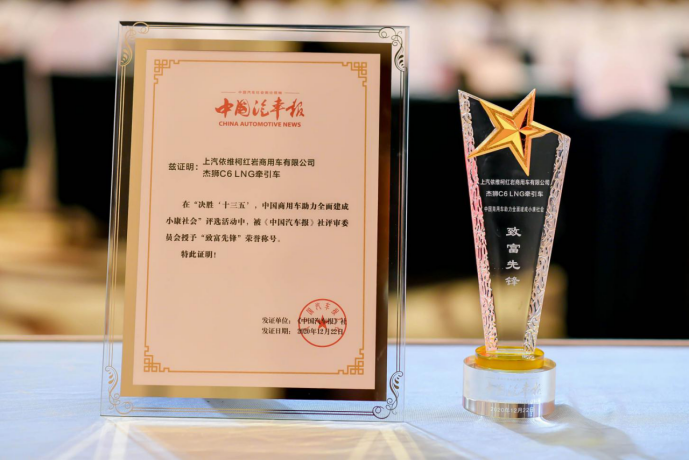 12月22日,由中國汽車報(bào)社主辦的“車輪上的中國—商用車助力全面建設(shè)小康社會(huì)年度盛典” 在北京圓滿落幕,我國民族知名重卡企業(yè)——上汽依維柯紅巖商用車有限公司(以下簡稱“上汽紅巖”)因在全面建成小康社會(huì)事業(yè)中作出突出貢獻(xiàn),被授予“大國基石”榮譽(yù)稱號(hào),同時(shí)旗下紅巖杰獅C6 LNG牽引車獲得“致富先鋒”殊榮。