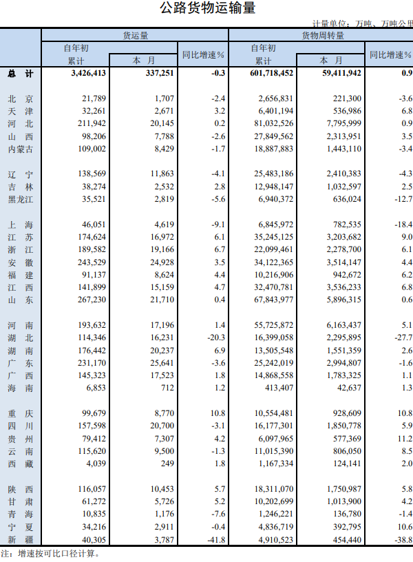 2020年12月公路貨物運輸量