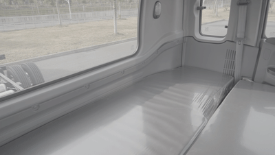 德沃斯座椅采用了三人座的布局,平時中間的座椅放倒可做儲物格,當有貨主跟車時,三人乘坐也非常方便。將座椅全部放倒,鋪上床墊即可成為1.2米寬的雙人床,而且臥鋪邊上的小窗戶還可以打開,便于通風換氣。