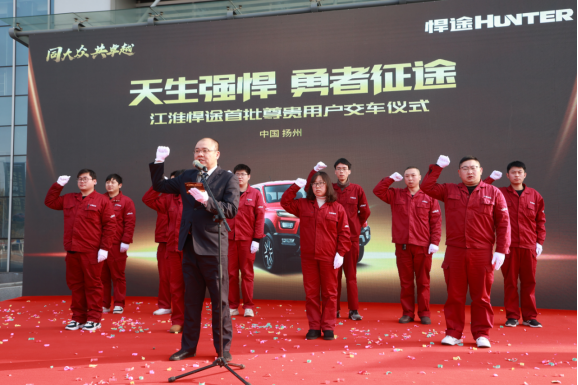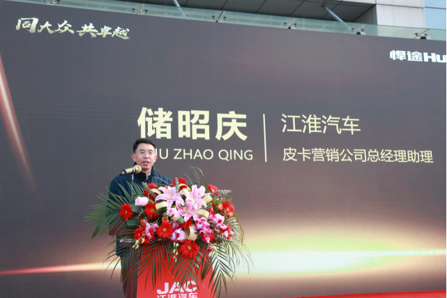 江淮輕型商用車制造公司副總經理、揚州江淮輕型汽車有限公司總經理趙濤先生,江淮輕型商用車皮卡營銷公司總經理助理儲昭慶先生,揚州江淮輕型汽車有限公司黨委副書記洪磊先生等廠商領導參加了活動。儲總在致辭中提到,“悍途皮卡是江淮皮卡邁向乘用化技術領先、研發與智造領先的堅實一步,是在江淮汽車與大眾深度合資合作的背景下,面向未來而精心打造的全新一代智能寬體大皮卡,它融合了最新設計理念和智能科技,將皮卡國際化、乘用化、越野化、高端化和科技化進行了完美的詮釋。”