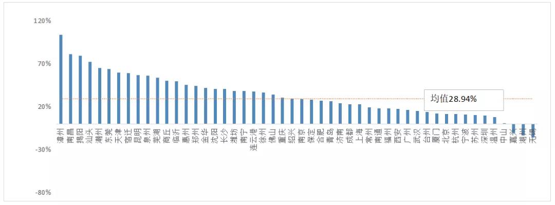 業(yè)務(wù)量前五十位城市年貨節(jié)前期同比增幅情況
