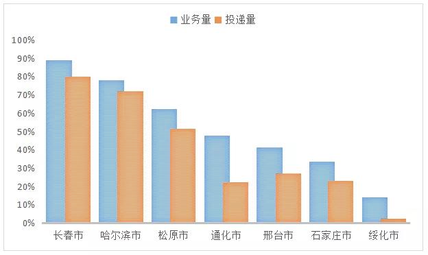 部分城市近期快遞業(yè)務(wù)量、投遞量變化趨勢