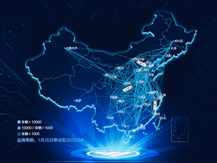 由中國物流與采購聯合會、中國交通報、福田汽車、中交興路聯合發布,2021年1月20日零點至28日24點,春節期間在途福田汽車(重卡)637409輛,省際運輸線路447條,覆蓋全國30個省、直轄市、自治區,福田汽車首發重卡遷徙地圖,人留車行保障“原年”民生,點亮復興路 保障幸福年。