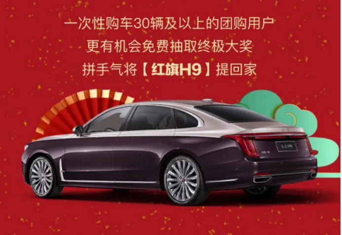 團(tuán)購(gòu)獎(jiǎng) | 紅旗H9 1輛 提車劵 | 購(gòu)車30臺(tái)及以上,可再抽團(tuán)購(gòu)獎(jiǎng) |