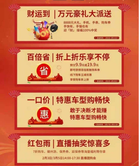 助開工的活動包含了“財運到”“一口價”和“紅包雨”三種玩法。在“財運到”玩法中,購車用戶點擊活動頁面的「財」運到,填寫完整信息后,點擊“立即拆福袋”即可獲得獎品,獎品從1000元的購車券到價值8888元的禮品不等。“一口價”是指江淮輕卡旗下六大品牌加工程車,共8款車型,沒有任何套路,一口價購車,省時省心。“紅包雨”指的是在3月5日下午14:00-17:30,江淮輕卡將舉辦直播團購會,用戶觀看直播,除了可以贏取現金紅包,還可以參與抽獎,獎品豐富,有7折購車名額、延保券、免費保養券等,同時還有品鑒之旅徽州游名額,卡哥工作之余還可以陪伴家人共游徽州。