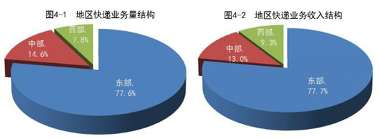 1-2月,東、中、西部地區(qū)快遞業(yè)務(wù)量比重分別為77.6%、14.6%和7.8%,業(yè)務(wù)收入比重分別為77.7%、13%和9.3%。與去年同期相比,東部地區(qū)快遞業(yè)務(wù)量比重下降2.4個百分點,快遞業(yè)務(wù)收入比重下降2.2個百分點;中部地區(qū)快遞業(yè)務(wù)量比重上升2.9個百分點,快遞業(yè)務(wù)收入比重上升2.3個百分點;西部地區(qū)快遞業(yè)務(wù)量比重下降0.5個百分點,快遞業(yè)務(wù)收入比重下降0.1個百分點。