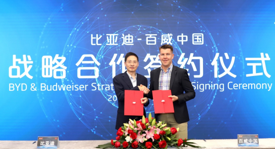 4月13日,比亞迪與百威(中國)集團在深圳坪山比亞迪全球總部正式簽署戰略合作協議,百威將率先采購首批比亞迪純電動牽引車Q3,后陸續投運佛山、唐山、武漢等多地園區。此次比亞迪攜手百威將零排放、無污染的新能源技術應用于啤酒運輸,以國際化企業的社會責任感與擔當匯聚可持續發展的強大合力,共同推動全球綠色物流運輸體系建設,促進行業乃至整個社會的綠色低碳發展。