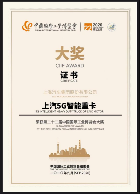 2020年9月15日,為期5天的以“智能、互聯——賦能產業新發展”為主題的第22屆中國國際工業博覽會(以下簡稱“工博會”)在國家會展中心(上海)揭開序幕。首日即傳喜訊,此次工博會上上汽依維柯紅巖商用車有限公司(以下簡稱“上汽紅巖”)“5G+L4智能重卡”從上百個參評項目中脫穎而出,一舉榮獲CIIF2020工博會大獎。