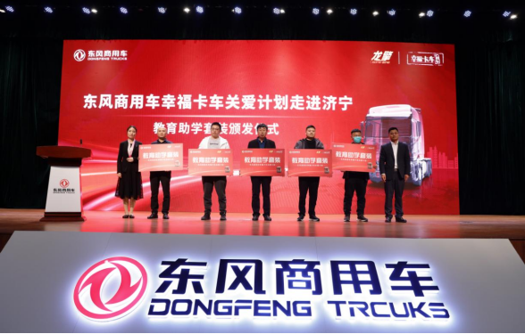 ▲東風商用車有限公司領導為卡友代表頒發(fā)教育助學、健康關愛