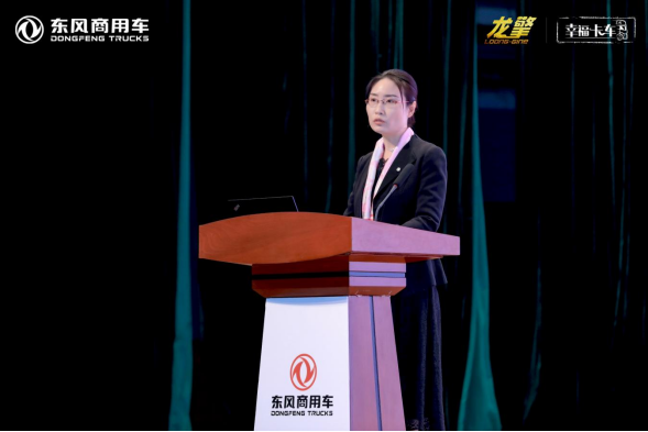 ▲東風商用車有限公司品牌與傳播部副部長李霞分享幸福卡車關愛計劃內(nèi)容