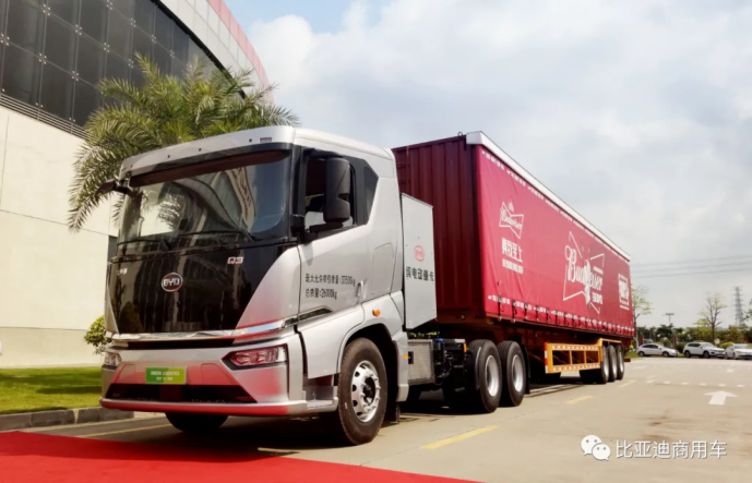 2021年4月14日,國際領先的快消品巨頭百威向比亞迪采購了一批全新純電動牽引車Q3,將陸續投放至佛山、唐山、武漢等多地園區。