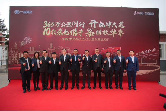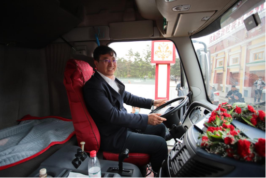 在紅旗的鳴笛聲中,承載著365萬公里的財(cái)富傳奇,承載著萬千卡友乃至所有解放人的滿腔熱情,55周年紀(jì)念版J6緩緩向第一汽車制造廠1號(hào)門。