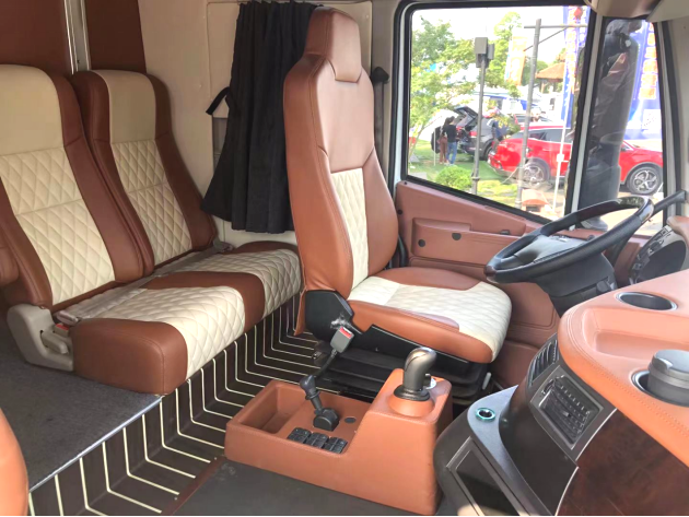 除了生活實用性以外,因為自駕游長途行駛的特殊性,上汽紅巖還特別注重人機工程,為該客戶營造開闊的視野。紅巖杰獅6X2房車采用同步歐洲領先的四點懸浮專利技術,大幅降低駕駛室震動,即使長期坐在駕駛室內,也能減少幾分顛簸,增添舒適。針對同乘的人員,也貼心的配備了四個帶腳拓展卡座按摩的航空座椅、拓展軟皮折疊沙發,即使是在長途旅行中也可享受到五星賓館的舒適度。在娛樂方面,配有智能家用投影儀、麥樂迪點歌臺,并配置2000Ah電池、1000W太陽能、5000W發電機為車內娛樂設施供電,充沛的能量供給讓客戶縱享歡樂,旅途無憂。