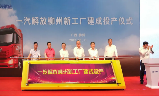 2021年5月11日,一汽解放柳州分公司新基地建成投產儀式在廣西壯族自治區柳州市柳東新區隆重舉行。柳州市委副書記、市長張壯,市委常委、常務副市長侯剛及柳州市相關部門、柳東新區領導,一汽解放黨委副書記、總經理朱啟昕,一汽解放副總經理兼事業部總經理王瑞健、一汽解放副總經理兼事業部黨委書記尚興武等事業部相關職能部主要領導,供應商代表、經銷商代表、參與新基地設計、建設、監理的團隊、新聞媒體代表,及柳州廠員工代表共同見證了一汽解放柳州新基地建成投產這一歷史時刻。