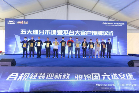 活動(dòng)現(xiàn)場(chǎng),駿鈴與五大細(xì)分市場(chǎng)大客戶舉行了簽約授牌儀式及服務(wù)鑒證官授牌儀式。雙方就冷鏈、綠通、快遞快運(yùn)、商貿(mào)、物流運(yùn)輸?shù)乳_(kāi)展深入合作,以優(yōu)質(zhì)資源,解決用戶用車痛點(diǎn),共同助力細(xì)分市場(chǎng)更好發(fā)展。