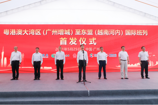廣州市市長溫國輝出席活動并宣布發車,中國外運董事長李關鵬、董事會秘書李世礎,黃埔海關、廣州市政府相關部門負責人,中國外運華南區域總經理劉展發、中國鐵路廣州局集團、廣州交投集團、中鐵集裝箱等企業代表出席本次儀式。