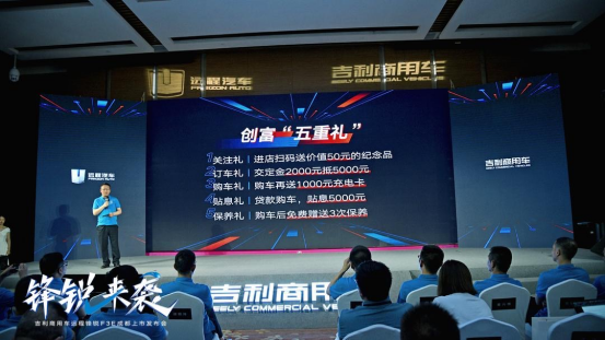 發布會現場公布了吉利遠程鋒銳F3E的價格,分欄板車與廂貨車兩個版本,售價11.88—13.18萬元,同時還可享受“創富五重禮”:看車就送精美禮品、訂車享受2000元抵5000元優惠、購車立得1000元充電卡、5000元金融貼息和3次免費保養,可謂誠意滿滿。現場客戶紛紛為之心動,掀起了一波認購高潮,總認購數達59臺。