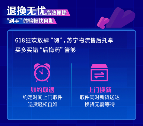 剁手一時爽,退貨上火煩!大促期間, 逆向物流的優先級常常被降級。而蘇寧物流“快速退”、“上門取件”、“上門換新”三大貼心服務助力“閃電級”退換貨。