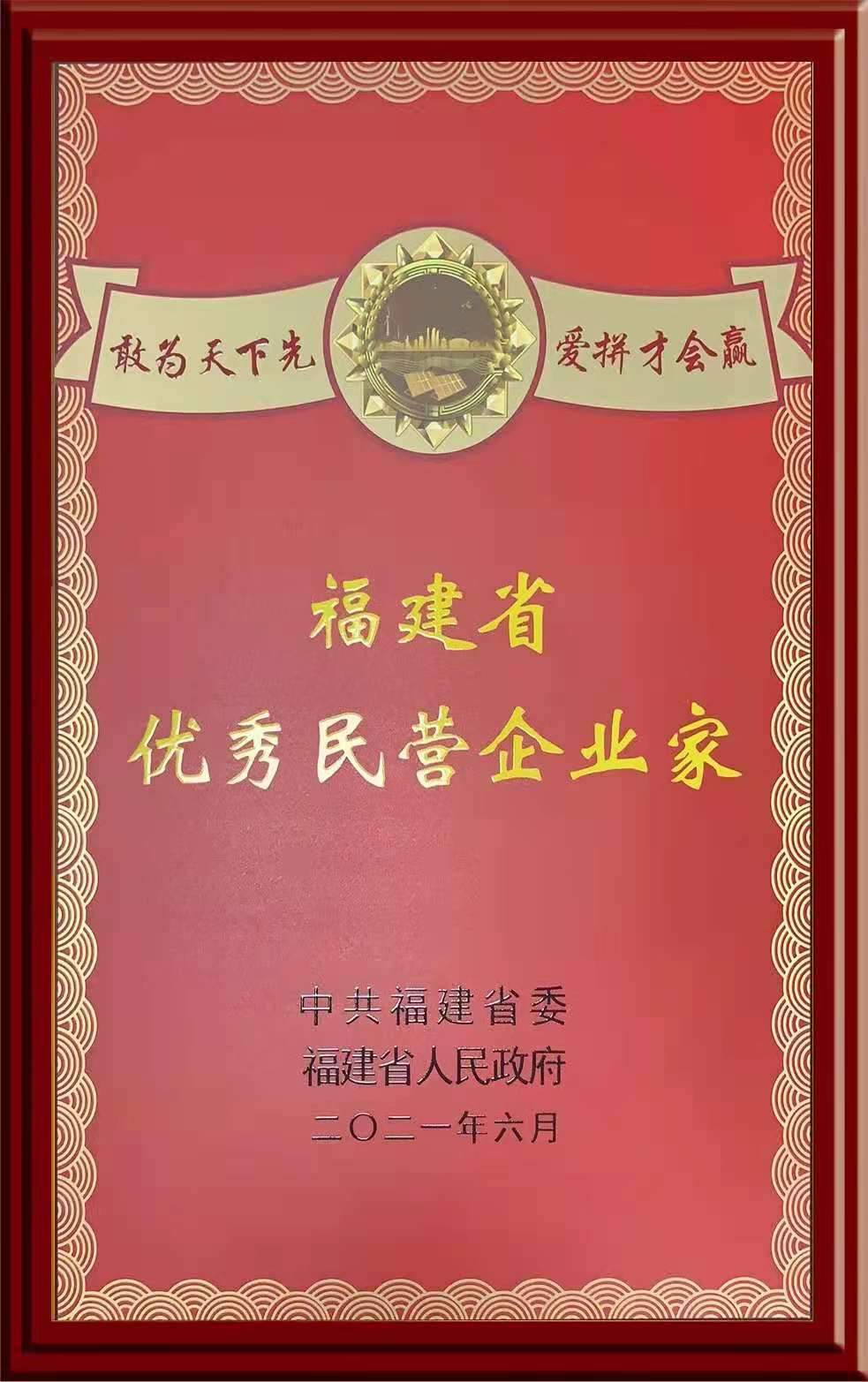 2016年以來(lái),他先后榮獲全國(guó)勞動(dòng)模范、全國(guó)五一勞動(dòng)獎(jiǎng)?wù)隆⒏母镩_放四十年福建最有影響力企業(yè)家提名獎(jiǎng)、改革開放四十年物流行業(yè)企業(yè)家代表性人物、2017-2018年度誠(chéng)信工作標(biāo)兵等榮譽(yù)稱號(hào)。