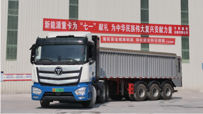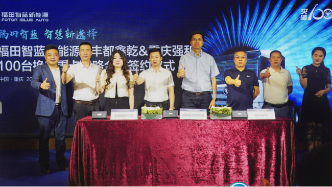 2021年6月24日,福田智藍(lán)新能源與豐都鑫乾物流運(yùn)輸公司簽訂100臺(tái)換電重卡采購合同,即日起分批交付,雙方共創(chuàng)全國換電重卡落地運(yùn)營第一大單,向建黨100周年獻(xiàn)禮!